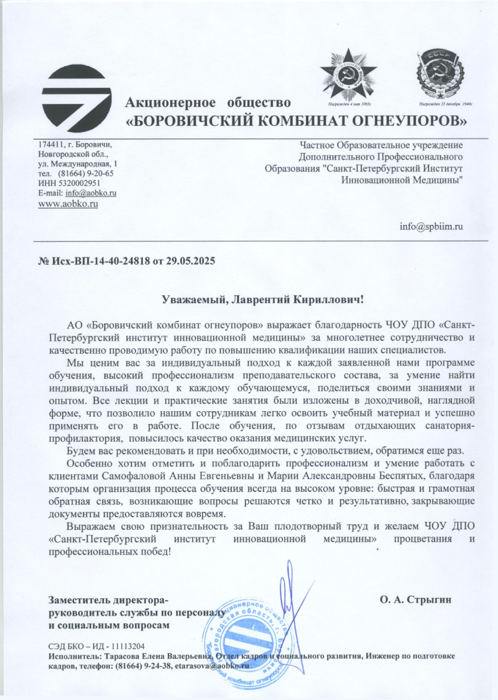 По итогам освоения программы и успешного прохождения итоговой аттестации слушателям прошедшим обучение, выдается сертификат установленный ЧОУ ДПО «Санкт-Петербургский институт инновационной медицины» образца.
